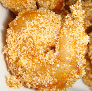 8 tbsp sooji, available in most Indian stores( spread it well on a plate so that it is easier to roll the shrimps in it)